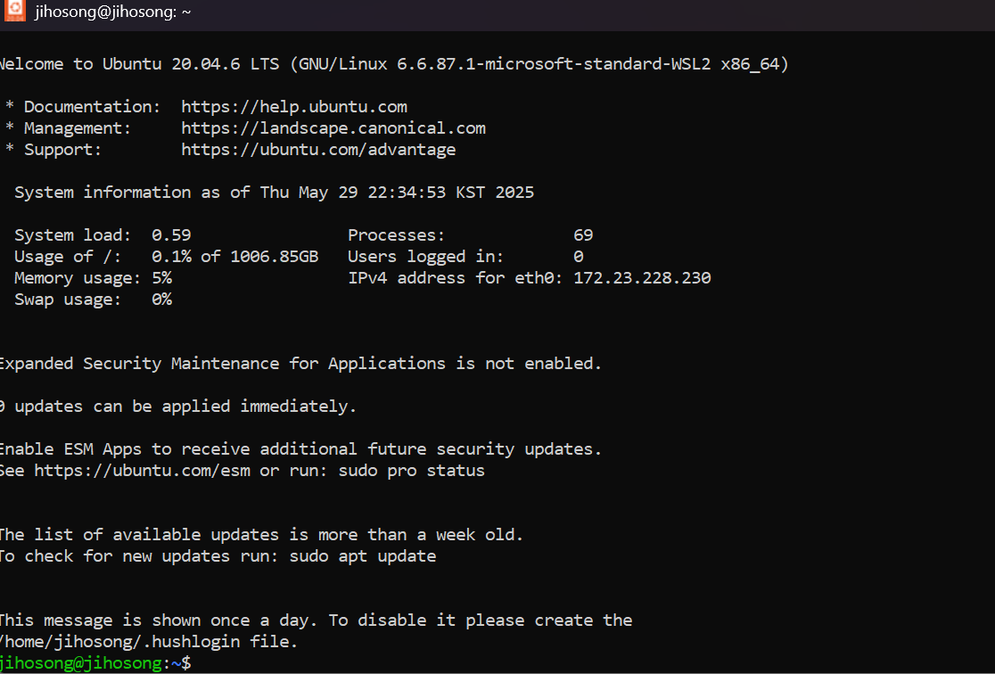 * ubuntu 20.04 설치하고 username / pw 설정할 때